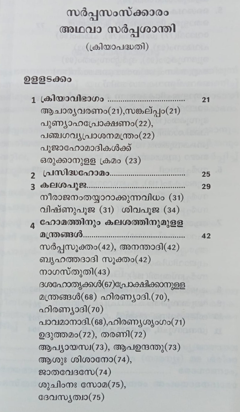 അറിഞ്ഞോ അറിയാതെയോ ഈ ജന്മത്തിലോ ജന്മാന്തരങ്ങളിലോ ചെയ്തുപോയ സര്‍പ്പഹിംസയ്ക്ക് പരിഹാരമായി ചെയ്യുന്ന ഒരു മഹാപ്രായശ്ചിത്തക്രിയയാണ് സര്‍പ്പസംസ്ക്കാരം അഥവാ സര്‍പ്പശാന്തി. സര്‍പ്പക്കാവ് നശിപ്പിയ്ക്കുക, സര്‍പ്പപ്രതിഷ്ഠകള്‍ക്ക് അംഗഭംഗം വരുത്തുക മുതലായ ക്രൂരകൃത്യങ്ങള്‍ ചെയ്താല്‍ അതിന്‍റെ ദോഷം വരുംതലമുറയ്ക്കും ഉണ്ടാകുന്നതാണ്. ഇതിനെല്ലാം വേണ്ടി ചെയ്യുന്ന ഒരു മഹാപ്രായശ്ചിത്തമാണ് സര്‍പ്പസംസ്ക്കാരം. സര്‍പ്പസംസ്ക്കാരം അഥവാ സര്‍പ്പശാന്തി, ആശ്ലേഷബലി കൂടാതെ സര്‍പ്പബലി, ശൈവം വൈഷ്ണവം ഇങ്ങനെ രണ്ടുതരത്തിലുളള പൂജകളും, വേദമന്ത്രങ്ങളും സങ്കല്പങ്ങളും ഇവയെല്ലാം ഉള്‍ക്കൊളളിച്ചുകൊണ്ട് തയ്യാറാക്കിയിട്ടുളളതാണ് ക്രിയാപദ്ധതി എന്ന ഈ പുസ്തകം.